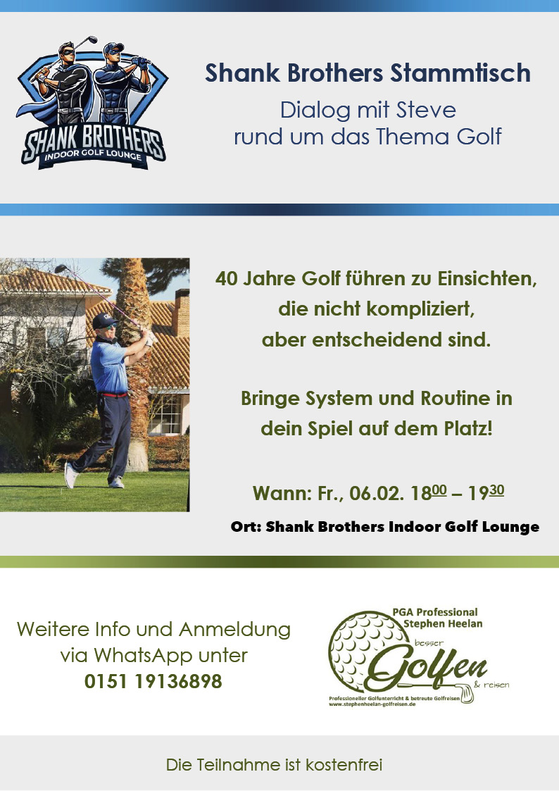Am 10. Dezember 2025 findet in der Shank Brothers Indoor Golf Lounge ein exklusiver Workshop mit Golf-Coach Felix Lubenau statt.Der Fokus: Eisen effizienter trainieren, besser treffen und konstanter spielen. Was dich erwartet In dieser kompakten und praxisnahen Session zeigt Felix Lubenau, wie du deine Eisen technisch optimal einsetzt, welche Faktoren wirklich für Länge sorgen, wie… Felix Lubenau’s Pro Series: Eisen Skills – Kostenloser Workshop weiterlesen